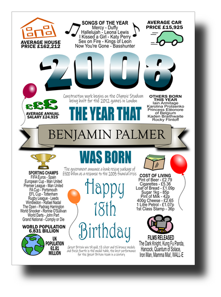 18th BIRTHDAY CARD BIRTH YEAR, FULL OF FUN FACTS