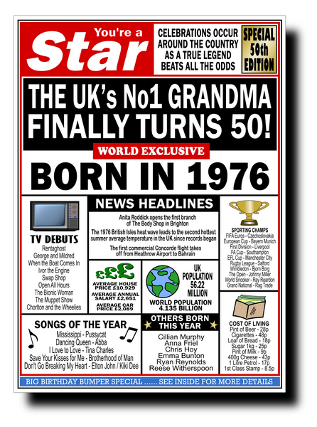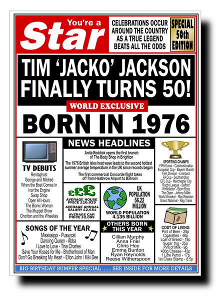 50th BIRTHDAY CARD, FUN NEWSPAPER FRONT PAGE