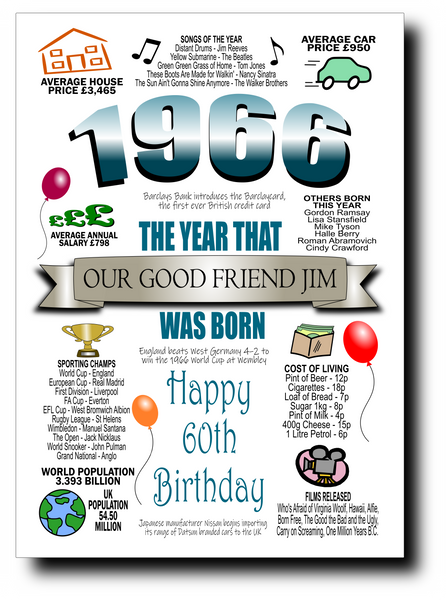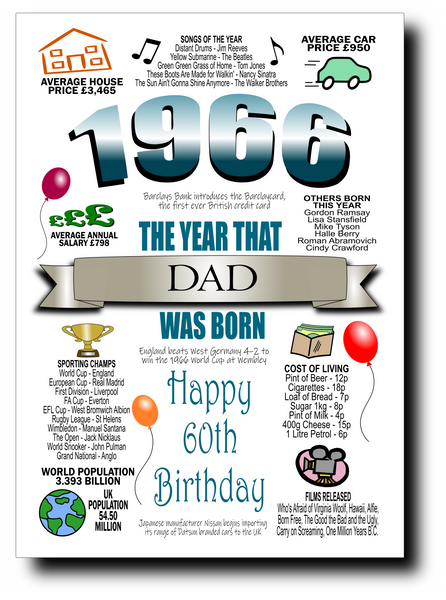 60th BIRTHDAY CARD BIRTH YEAR, FULL OF FUN FACTS