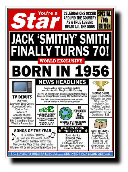 ๐ŸŒŸ Full of researched memories and facts of the year the recipient was born, converted as an amusing imitation newspaper