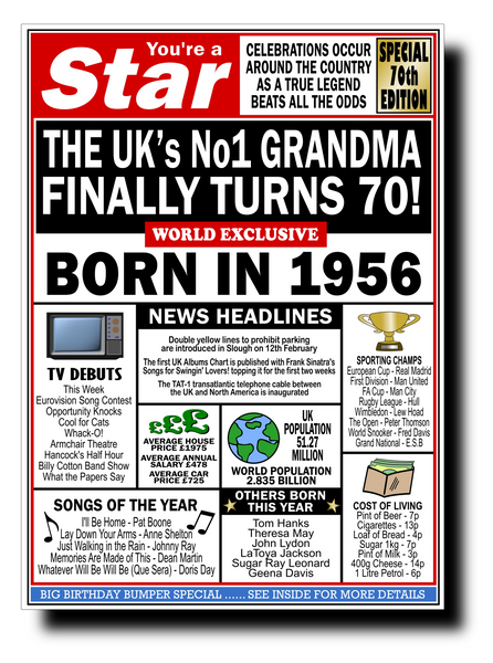 70th BIRTHDAY CARD, FUN NEWSPAPER FRONT PAGE